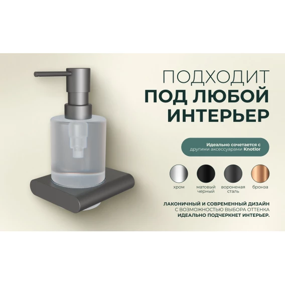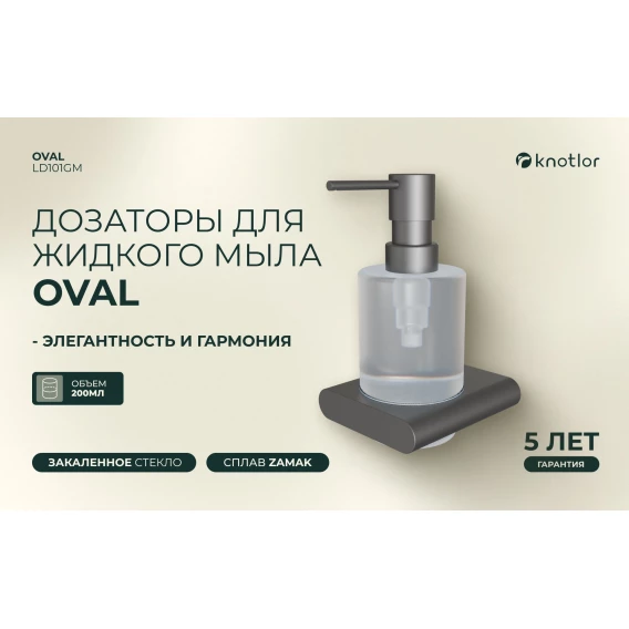 Дозатор для жидкого мыла Knotlor Oval LD101GM 200 мл, настенный, вороненая сталь