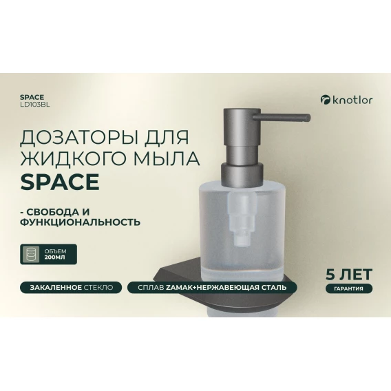 Дозатор для жидкого мыла Knotlor Space LD103GM 200 мл, настенный, вороненая сталь