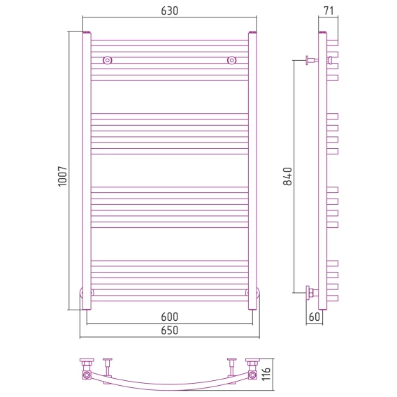 Полотенцесушитель водяной 1000x600 белый глянец Сунержа Аркус 12-0251-1060