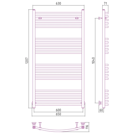 Полотенцесушитель водяной 1200x600 золотой матовый Сунержа Аркус 032-0251-1260