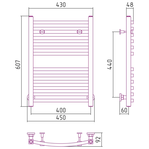 Полотенцесушитель водяной 600x400 белый глянец Сунержа Аркус 12-0251-6040