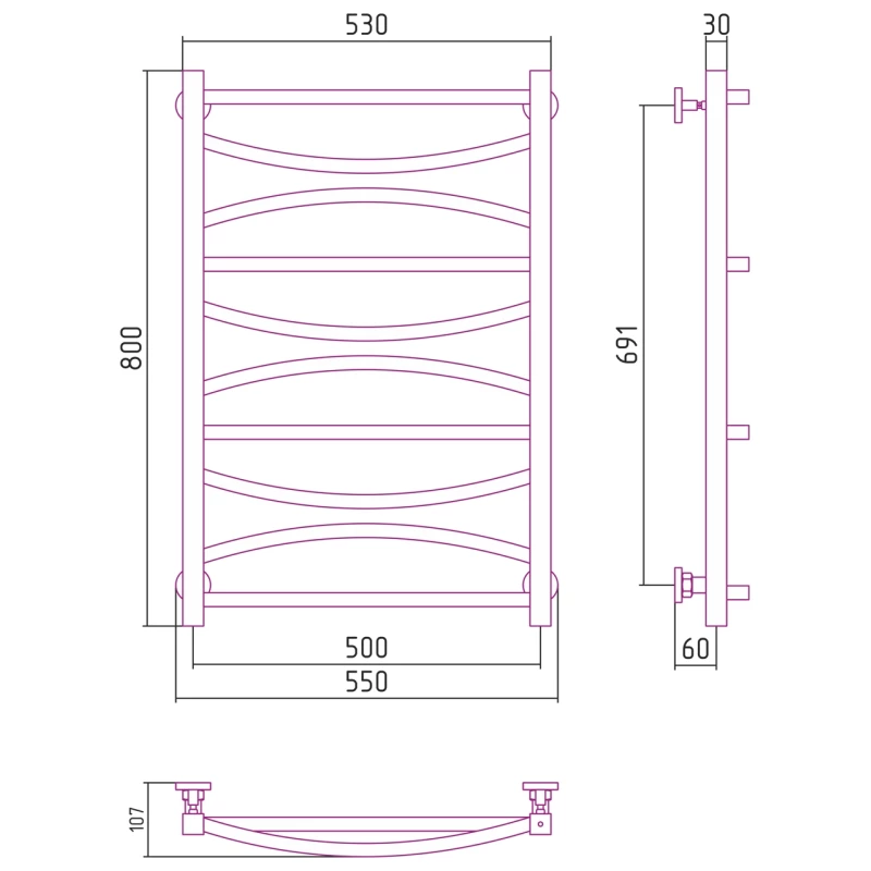 Полотенцесушитель водяной 1065x632 Secado Римини 4603777454210