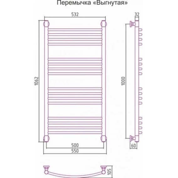 Полотенцесушитель водяной 1000x500 перемычка выгнутая состаренная бронза Сунержа Богема+ 05-0221-1050