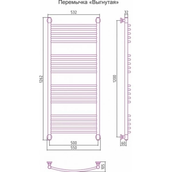 Полотенцесушитель водяной 1200x500 перемычка выгнутая состаренная латунь Сунержа Богема+ 051-0221-1250