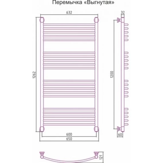 Полотенцесушитель водяной 1200x600 перемычка выгнутая античное белое золото Сунержа Богема+ 10-0221-1260