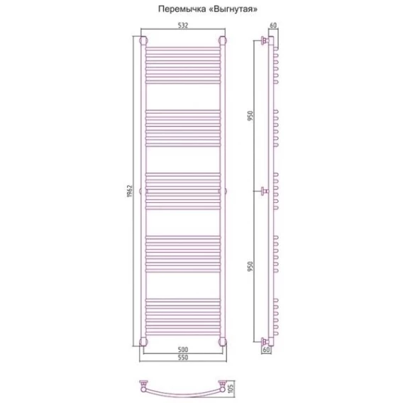 Полотенцесушитель водяной 1900x500 перемычка выгнутая сатин Сунержа Богема+ 071-0221-1950
