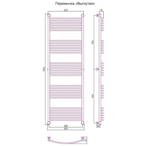Полотенцесушитель водяной 1900x600 перемычка выгнутая белый глянец Сунержа Богема+ 12-0221-1960