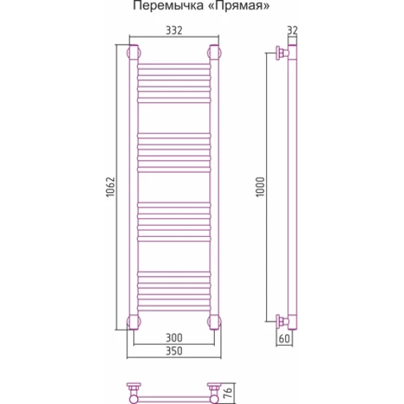 Полотенцесушитель водяной 1000x300 Сунержа Богема+ 00-0220-1030