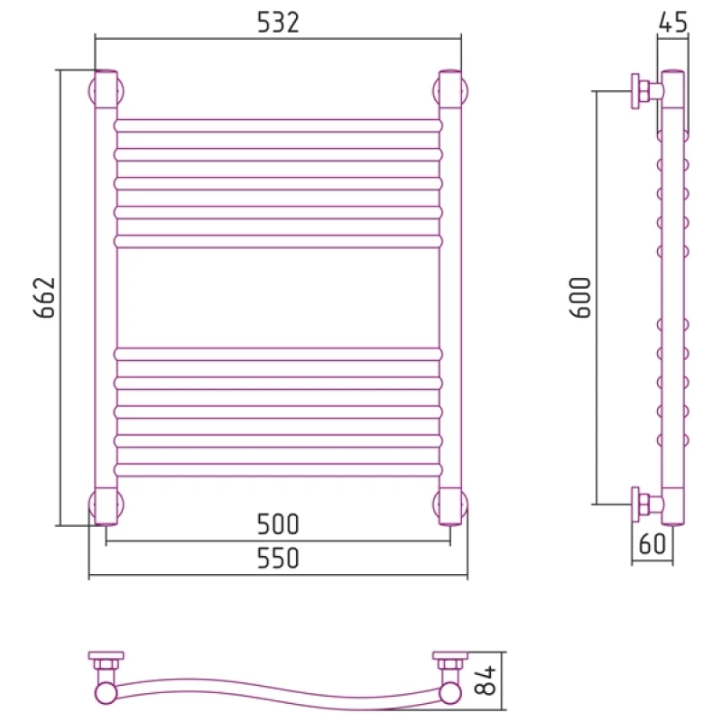 Полотенцесушитель водяной 1265x532 Secado Флоренция 4 4603777470678