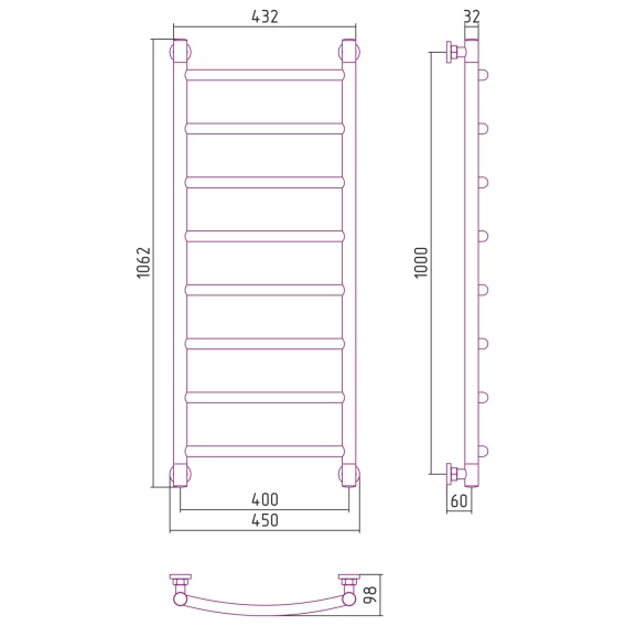 Полотенцесушитель электрический 870x432 ТЭН левый Secado Милан 1К 4603777450953