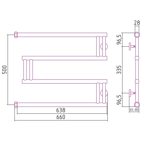 Полотенцесушитель водяной 500x650 золотой матовый Сунержа High-Tech model