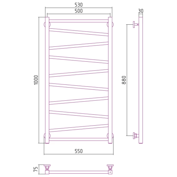 Полотенцесушитель водяной 1000x500 Сунержа Сирокко 00-0253-1050