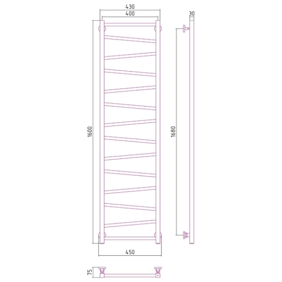 Полотенцесушитель водяной 1600x400 подключение нижнее Сунержа Сирокко 00-0253-1640