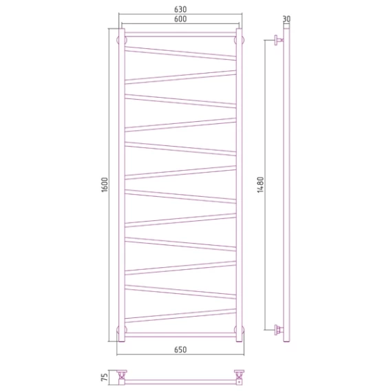 Полотенцесушитель водяной 1600x600 подключение нижнее Сунержа Сирокко 00-0253-1660