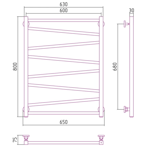 Полотенцесушитель водяной 800x600 золотой матовый Сунержа Сирокко 032-0253-8060