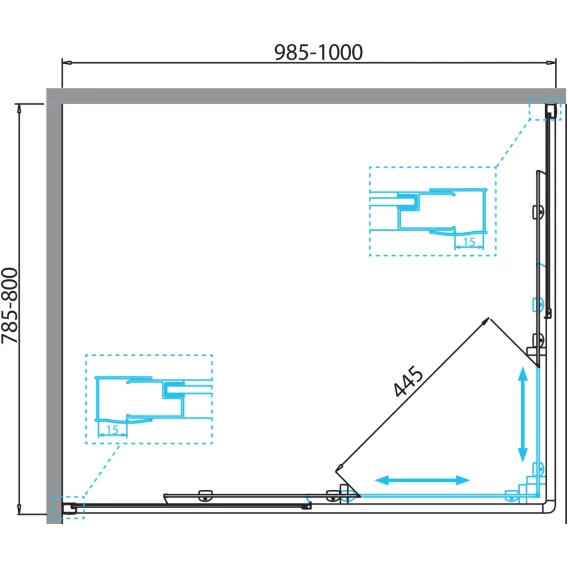 Душевой уголок 100x80 см BelBagno DUE-AH-2-100/80-C-Cr прозрачное