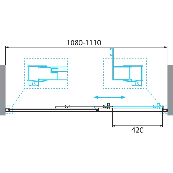 Душевая дверь 110 см BelBagno DUE-BF-1-110-C-Cr прозрачное