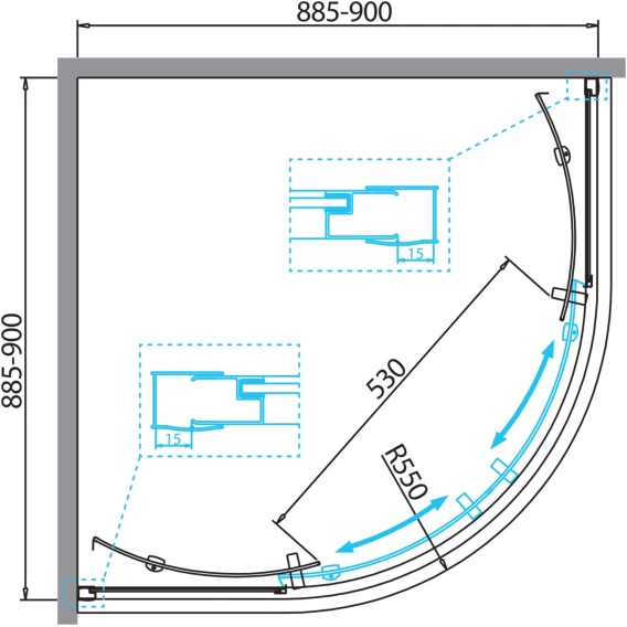Душевой уголок 90x90 см BelBagno DUE-R-2-90-P-Cr текстурное