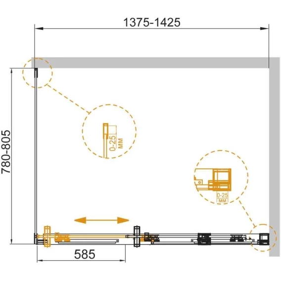 Душевой уголок 150x90 см Cezares DUET SOFT-AH-1-150/90-C-Cr прозрачное