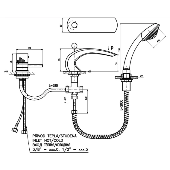 Смеситель на борт ванны термостатический Rav Slezak Dunaj DT272.5SZ