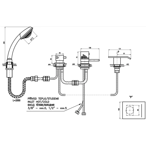 Крепление, Гибкая подводка, Душевой шланг, Душевая лейка