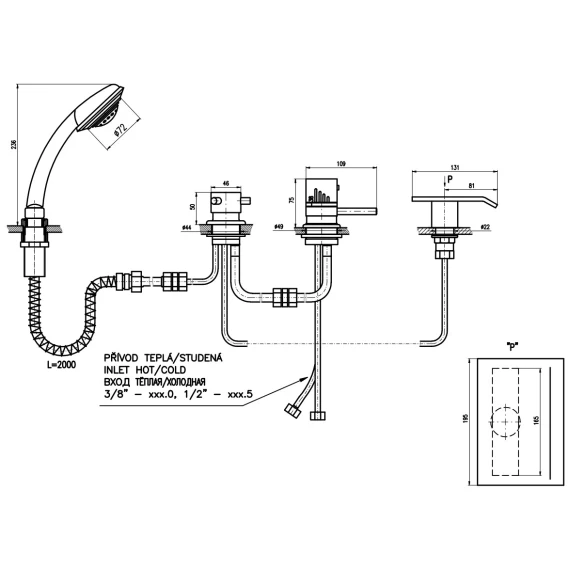 Крепление, Гибкая подводка, Душевой шланг, Душевая лейка