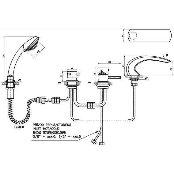 Смеситель на борт ванны термостатический Rav Slezak Dunaj DT272.5PZ