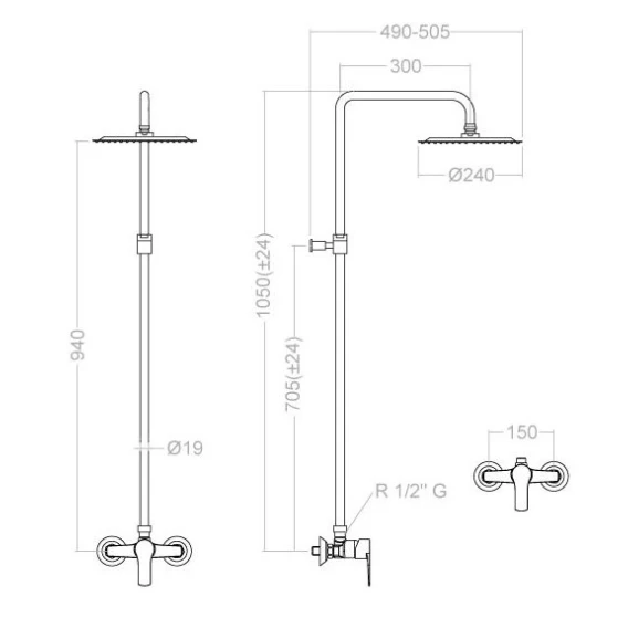 Душевая система 240 мм Ramon Soler Titanium 1864RP240