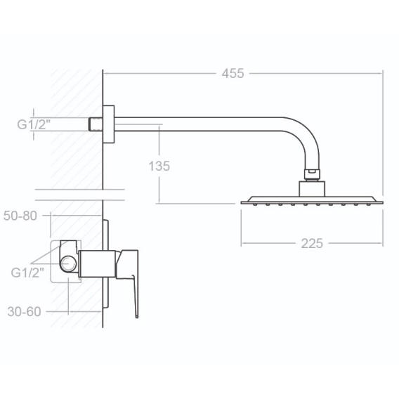 Верхний душ, Скрытая монтажная часть, Смеситель, Кронштейн