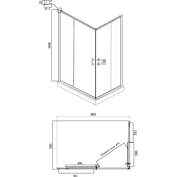 Ширина входа 49 см