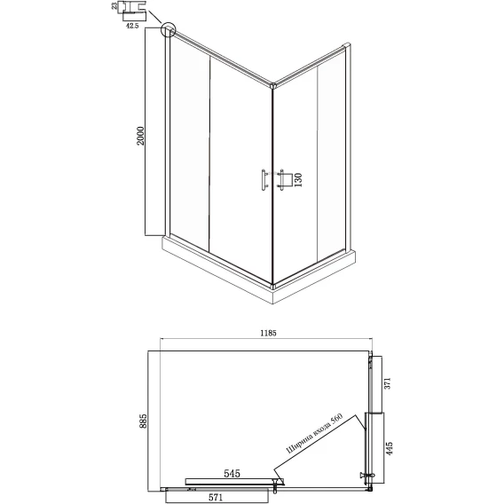 Душевой уголок 120x90 см Ambassador Kingston 14011122 прозрачное