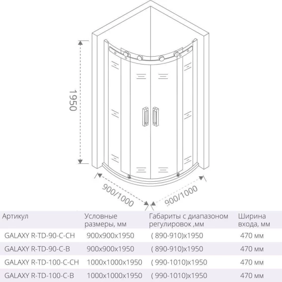 Душевой уголок 90x90 см Good Door Galaxy R-TD-90-C-B прозрачное