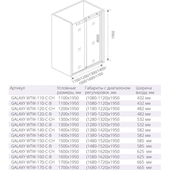 Душевая дверь 160 см Good Door Galaxy WTW-160-C-CH прозрачное