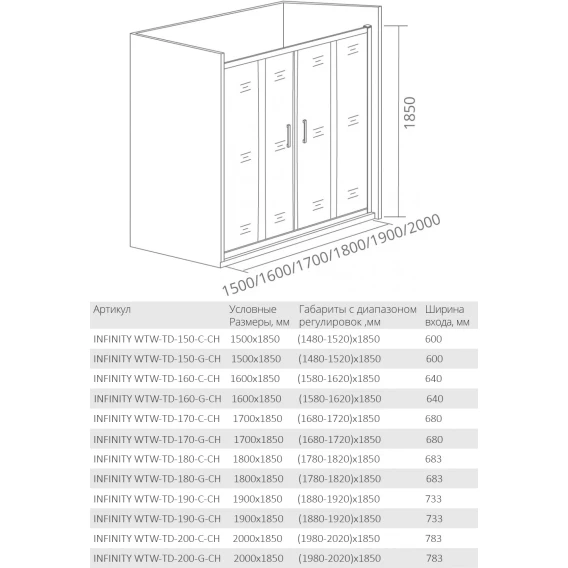 Душевая дверь 160 см Good Door Infinity WTW-TD-160-C-CH прозрачное