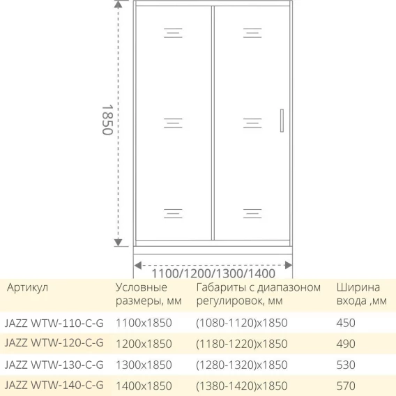 Душевая дверь 120 см Good Door Jazz WTW-120-C-G прозрачное