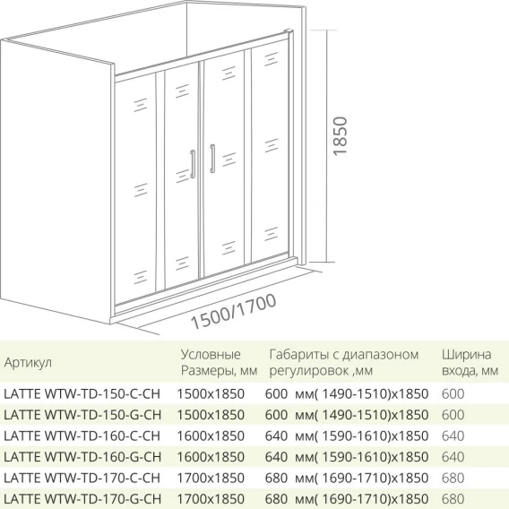 Душевая дверь 170 см Good Door Latte WTW-TD-170-C-WE прозрачное