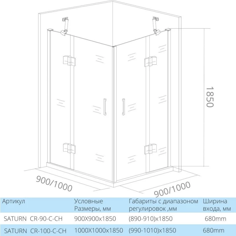 Душевой уголок 90x90 см Good Door Saturn CR-90-C-CH прозрачное