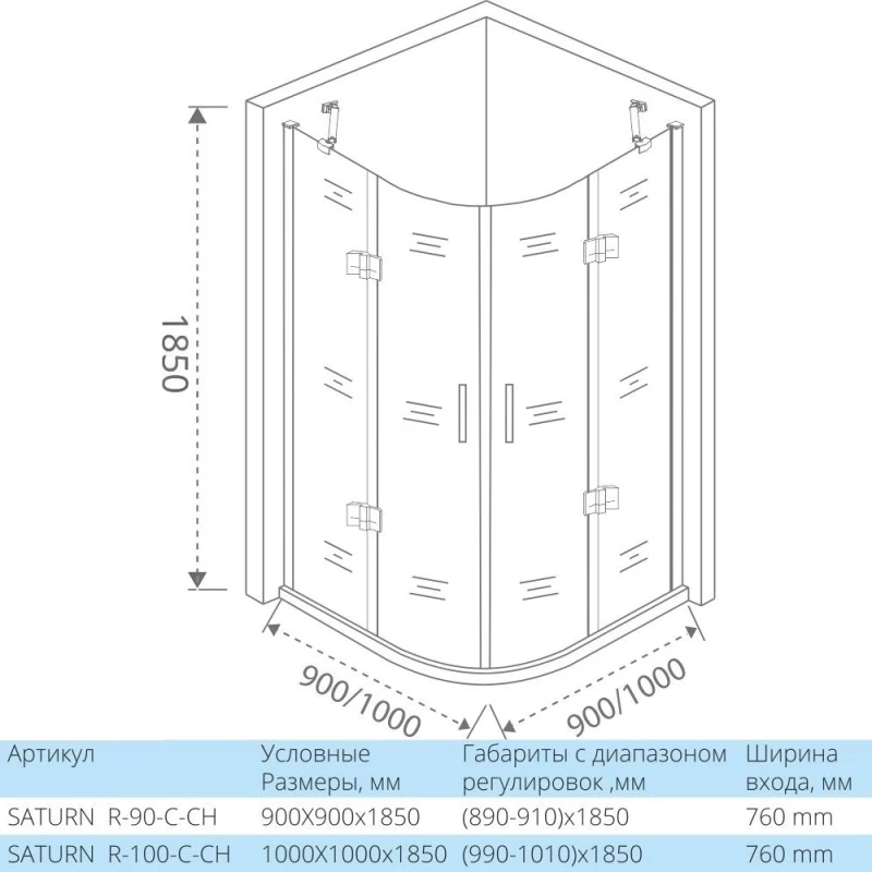 Душевой уголок 90x90 см Good Door Saturn R-90-C-CH прозрачное