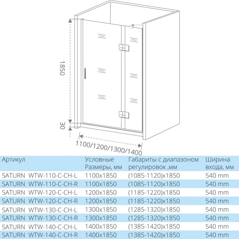 Душевая дверь 140 см Good Door Saturn WTW-140-C-CH-L прозрачное