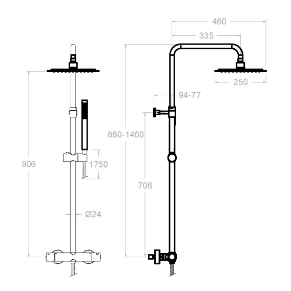 Металлическая розетка, Эксцентрики, Душевой шланг, Душевая лейка, Держатель для душевой лейки, Верхний душ, Кронштейн, Штанга душевая, Термостат