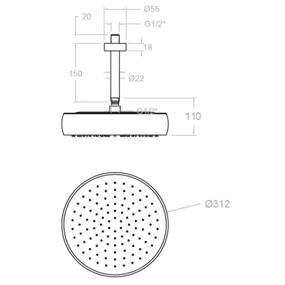 Диаметр верхнего душа 31.2 см