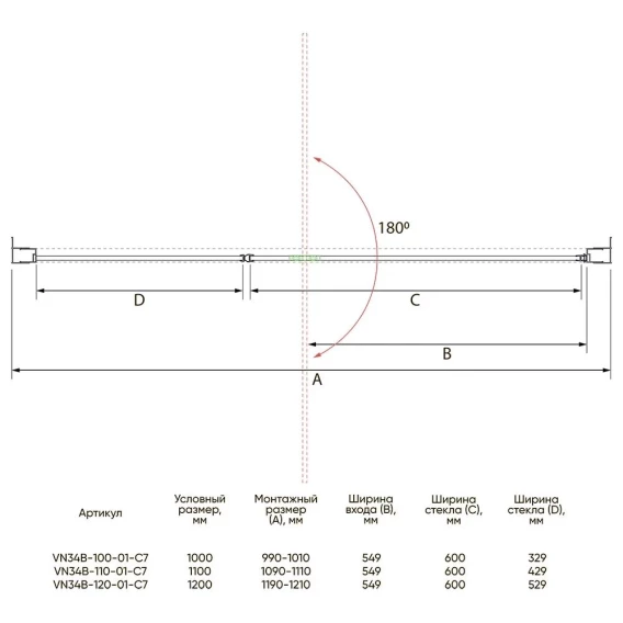 Душевая дверь 100 см Veconi Vianno VN34B-100-01-C7 прозрачное