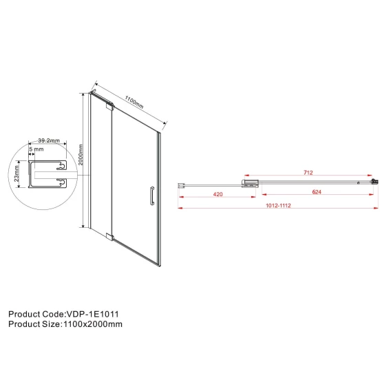 Душевая дверь 101,2-110 см Vincea Extra VDP-1E1011CLGM прозрачное