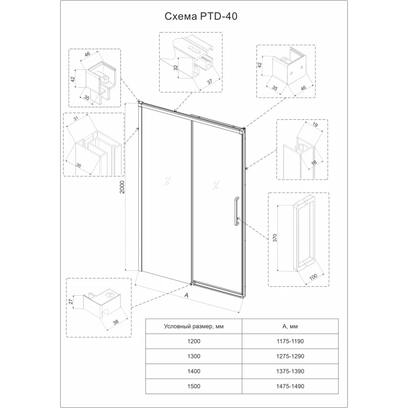 Душевая дверь 119 см Veconi Premium Trento PTD40-G-120-01-C4 прозрачное
