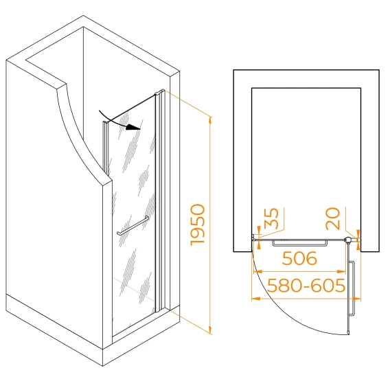 Душевая дверь Niagara NG-65-14CH 140 см, профиль хром, стекло шиншилла
