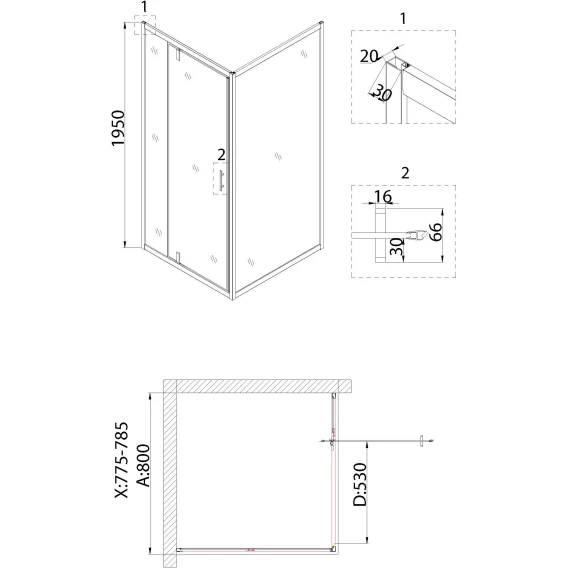 Душевая дверь 78,5 см Niagara NG-63-8A прозрачное