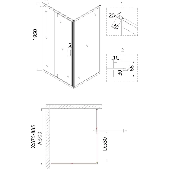 Душевая дверь 88,5 см Niagara NG-63-9A прозрачное