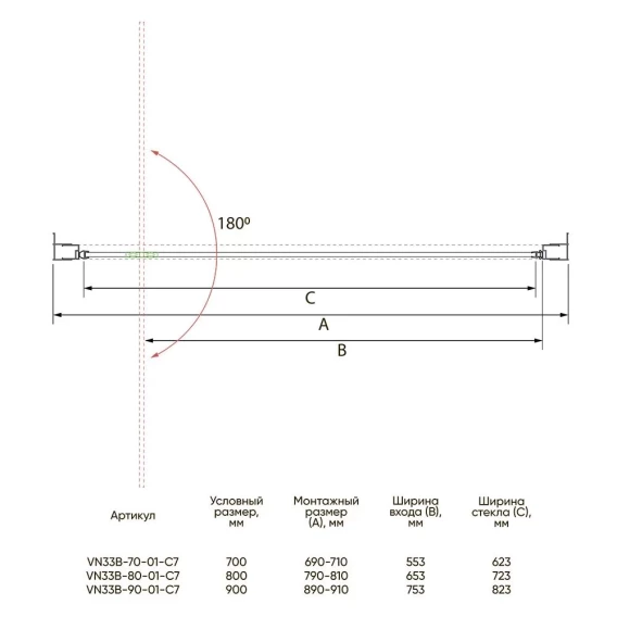 Душевая дверь 90 см Veconi Vianno VN33B-90-01-C7 прозрачное