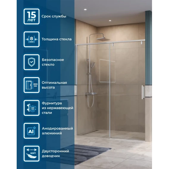 Душевая дверь BelBagno Soft Close SOFT_CLOSE-1-BF-1-160-C-Cr 160 см, профиль хром, стекло прозрачное