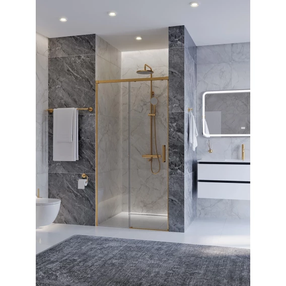 Душевая дверь Cezares Plane PLANE-BF-1-100-C-BORO 100 см, профиль золотой матовый, стекло прозрачное
